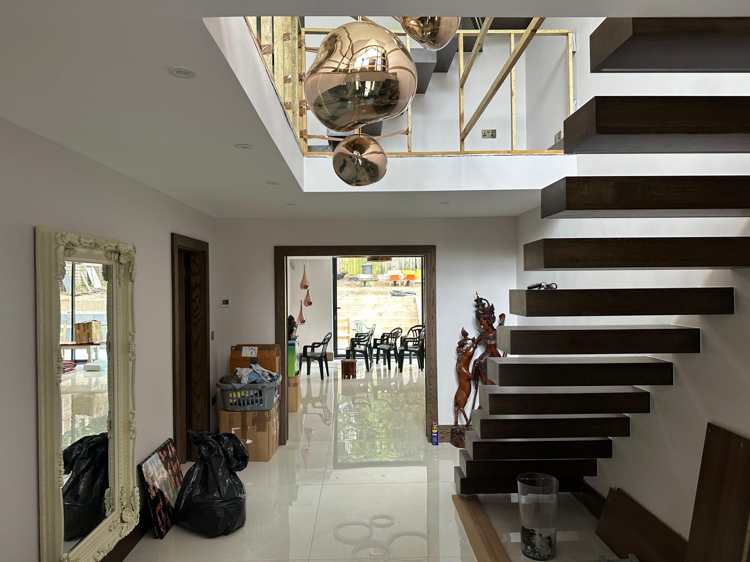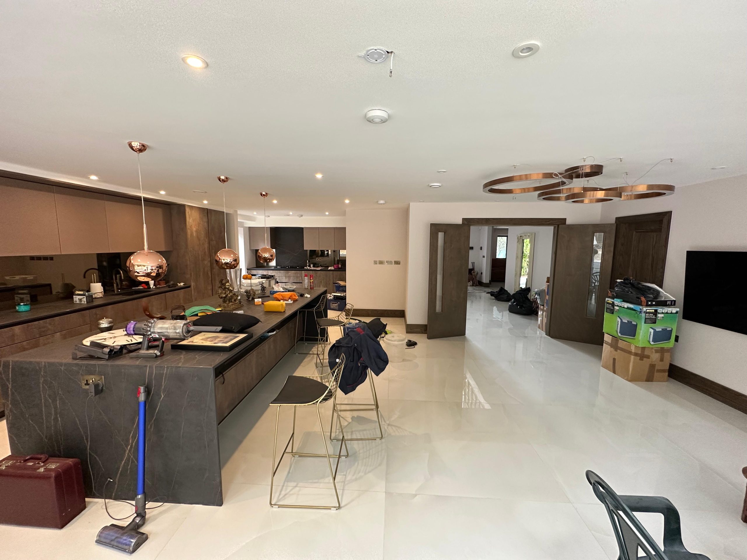 The project included structural construction, a rear home extension, and interior design improvements throughout the property.
